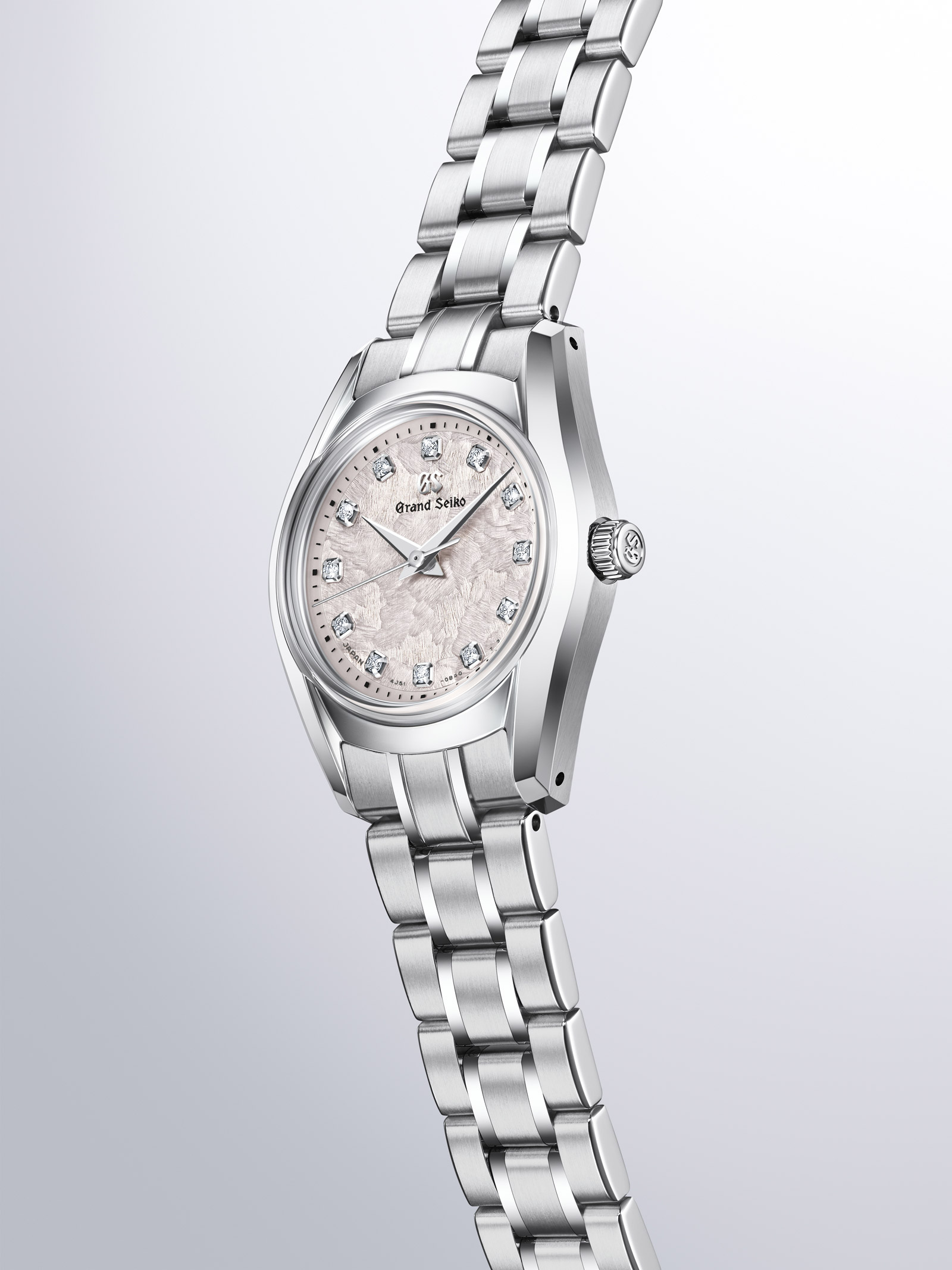 With the new STGF387 and STGF389, Grand Seiko honors this mid-century classic of watch design with a pair of small quartz models, each measuring just 26mm in diameter and featuring diamond hour markers. Each has a beautiful press-patterned dial that evokes a different aspect of the spring season.